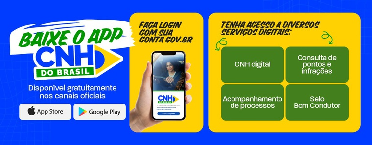 Para acessar o aplicativo CNH do Brasil, é necessário realizar o download gratuito nas lojas do Google Play e App Store , ou por meio do site do Ministério dos Transportes, utilizando a conta gov.br.
