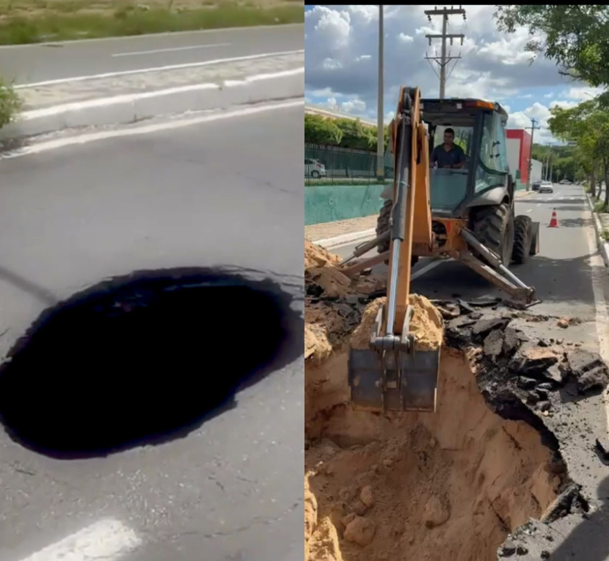 Um trecho da Avenida Jóquei Clube, localizada na Zona Leste de Teresina, foi interditado após a abertura de um buraco na pista, registrada nesta quarta-feira (18). A situação chamou a atenção de motoristas que passavam pela região e causou lentidão no trânsito.