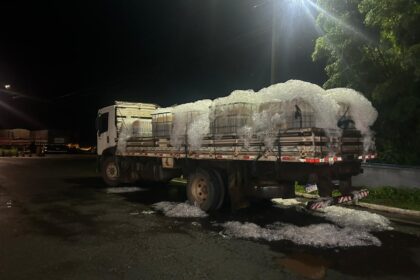 Um caminhão foi interceptado pela Polícia Rodoviária Federal na noite desta terça-feira (17), transportando de forma imprópria 1,5 tonaladas de tilápias vivas, a carga é avaliada em torno de R$ 15 mil...