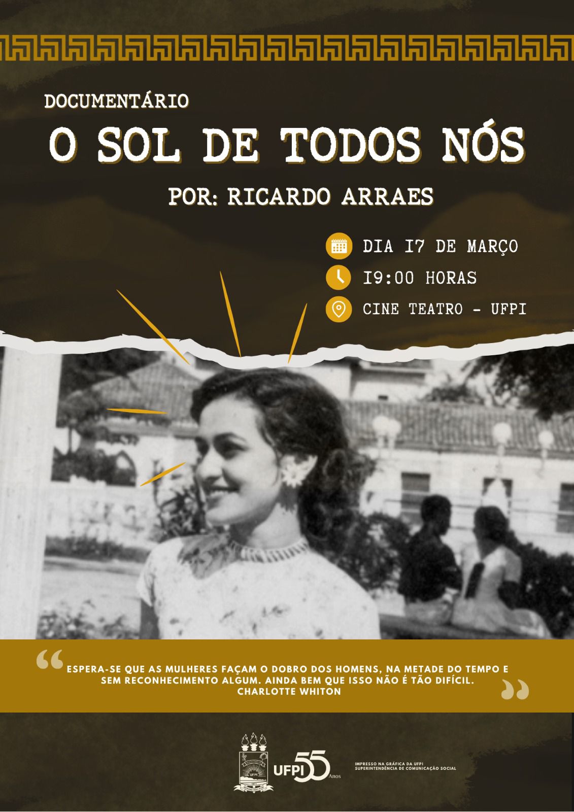 A Universidade Federal do Piauí (UFPI) realiza, nesta terça-feira (17), a exibição do documentário “O Sol de Todos Nós”, obra dirigida pelo professor doutor Ricardo Arraes. A sessão acontece às 19h, no Cine Teatro da UFPI, em Teresina.