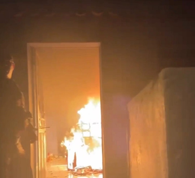 De acordo com informações da polícia, o suspeito estava armado com uma faca no momento das agressões. A guarnição foi acionada e, ao chegar ao endereço, encontrou o imóvel em chamas e com móveis danificados.