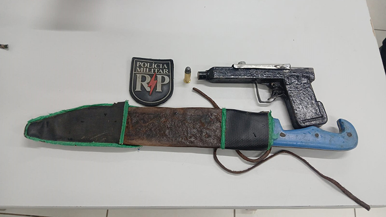 Durante buscas na residência, os policiais apreenderam uma arma artesanal calibre .38, com munição, além de um facão. Apesar da gravidade das denúncias, a mulher não apresentava lesões aparentes.