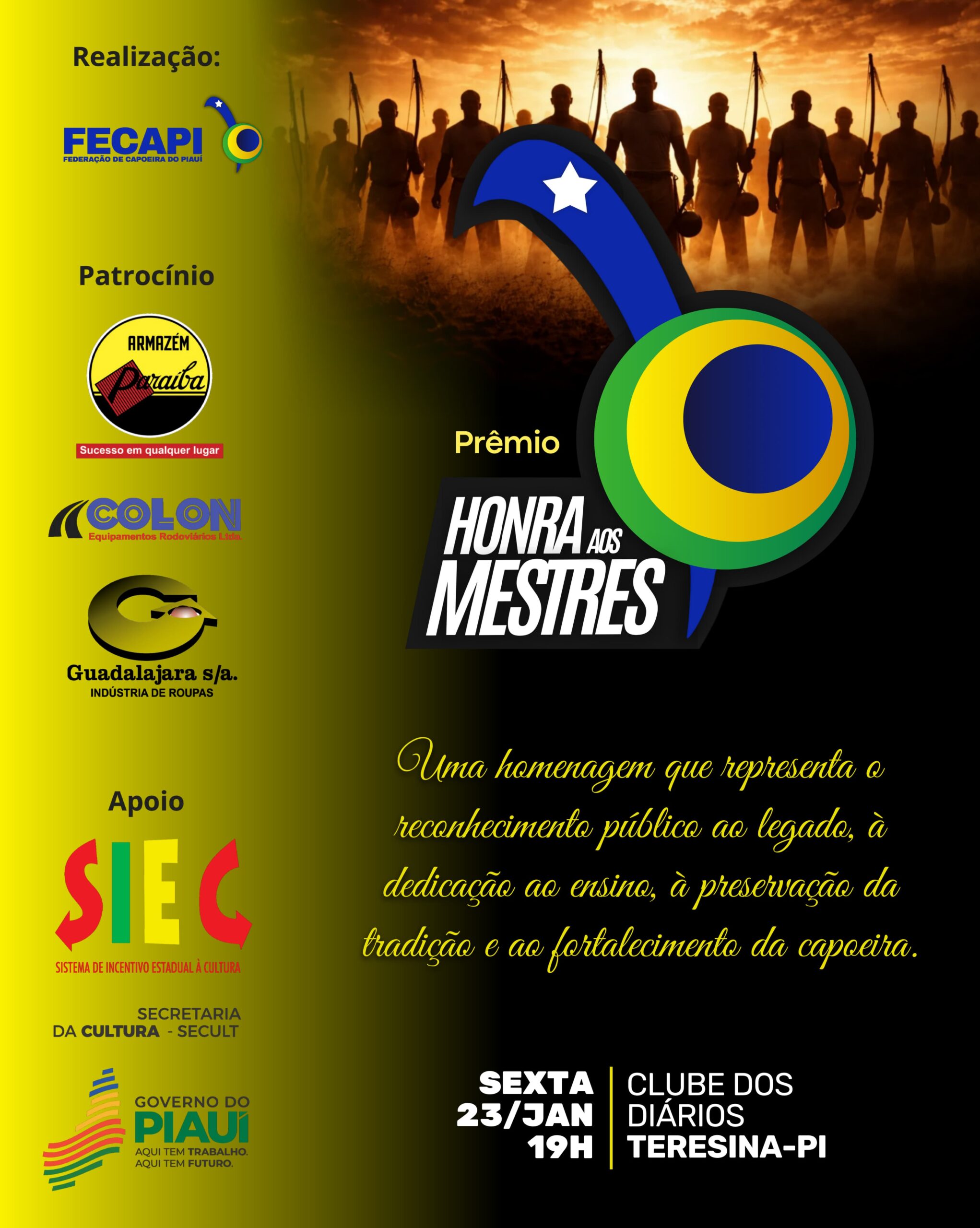 A Homenagem aos Mestres é um projeto institucional da Federação de Capoeira do Piauí (FECAPI), criado com o objetivo de reconhecer e valorizar mestres que dedicaram suas vidas à capoeira e que, por meio do seu trabalho, ajudam a cuidar, fortalecer, preservar e expandir essa importante manifestação da cultura brasileira dentro do estado do Piauí.