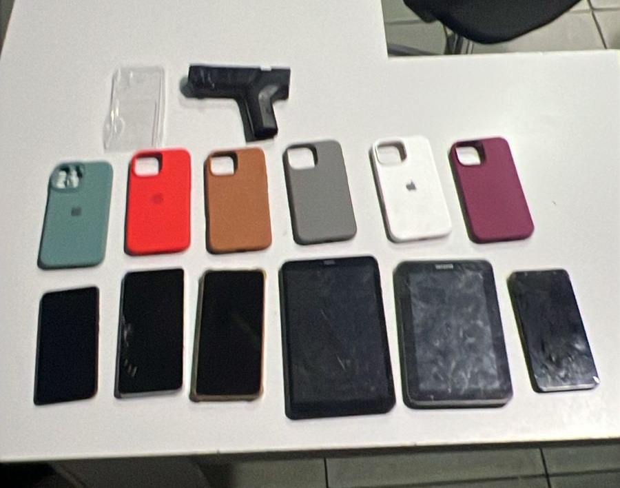 Na varredura realizada na área, os policiais apreenderam diversos celulares, tablets, capas para aparelhos e um simulacro de arma de fogo, semelhante ao descrito pelas vítimas. Nenhum dos itens recuperados foi imediatamente reconhecido como pertencente à vítima que acionou a polícia.