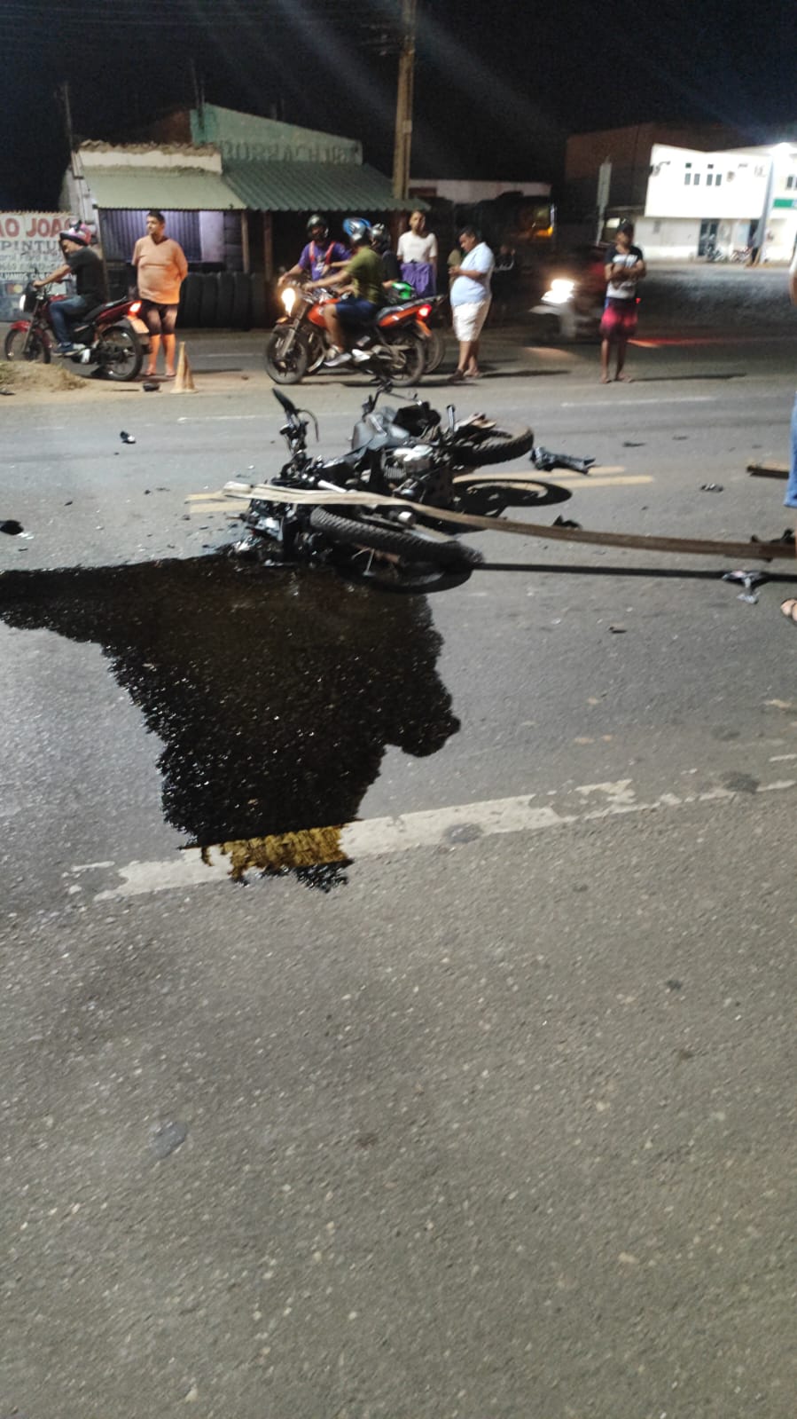 Com a força do impacto, parte da moto ficou completamente destruída.
