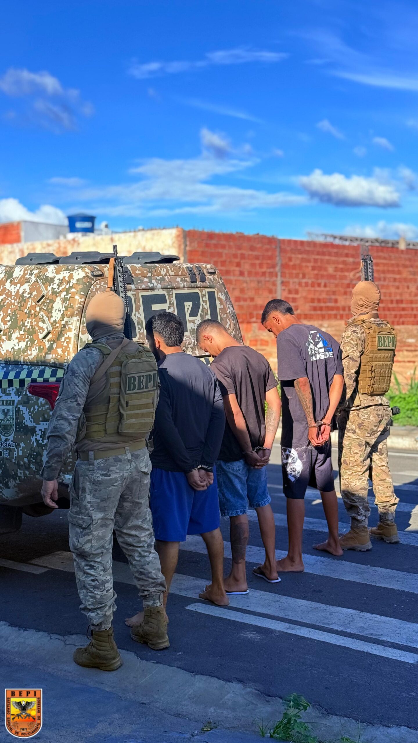 A ação ocorreu após informações repassadas pelos setores de inteligência da PM e da Polícia Civil indicarem que um grupo estaria se articulando para promover ataques contra equipes policiais na cidade. Durante rondas ostensivas na região, policiais da 1ª Companhia do BEPI visualizaram três indivíduos que, ao perceberem a aproximação da viatura, demonstraram nervosismo e tentaram fugir. Diante da atitude suspeita, foi realizado acompanhamento tático e abordagem. Com os conduzidos, identificados pelas iniciais A.G.S., L.F.M.S. e E.T.A.R, foram apreendidos um revólver calibre .32, munições de calibre .38, uma espingarda calibre 12 com seis munições, uma porção de substância análoga à maconha e dois aparelhos celulares.