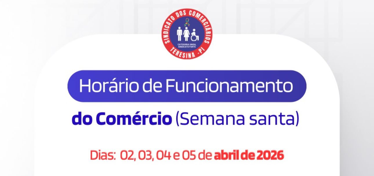 Durante a Semana Santa, o comércio terá horários de funcionamento especiais. O Sindicato dos Comerciários de Teresina divulgou como será a jornada no feriado para lojistas e varejistas, shopping’s, lotéricas, atacadistas e distribuidores, supermercados e açougues, livrarias e papelarias, e farmácias.