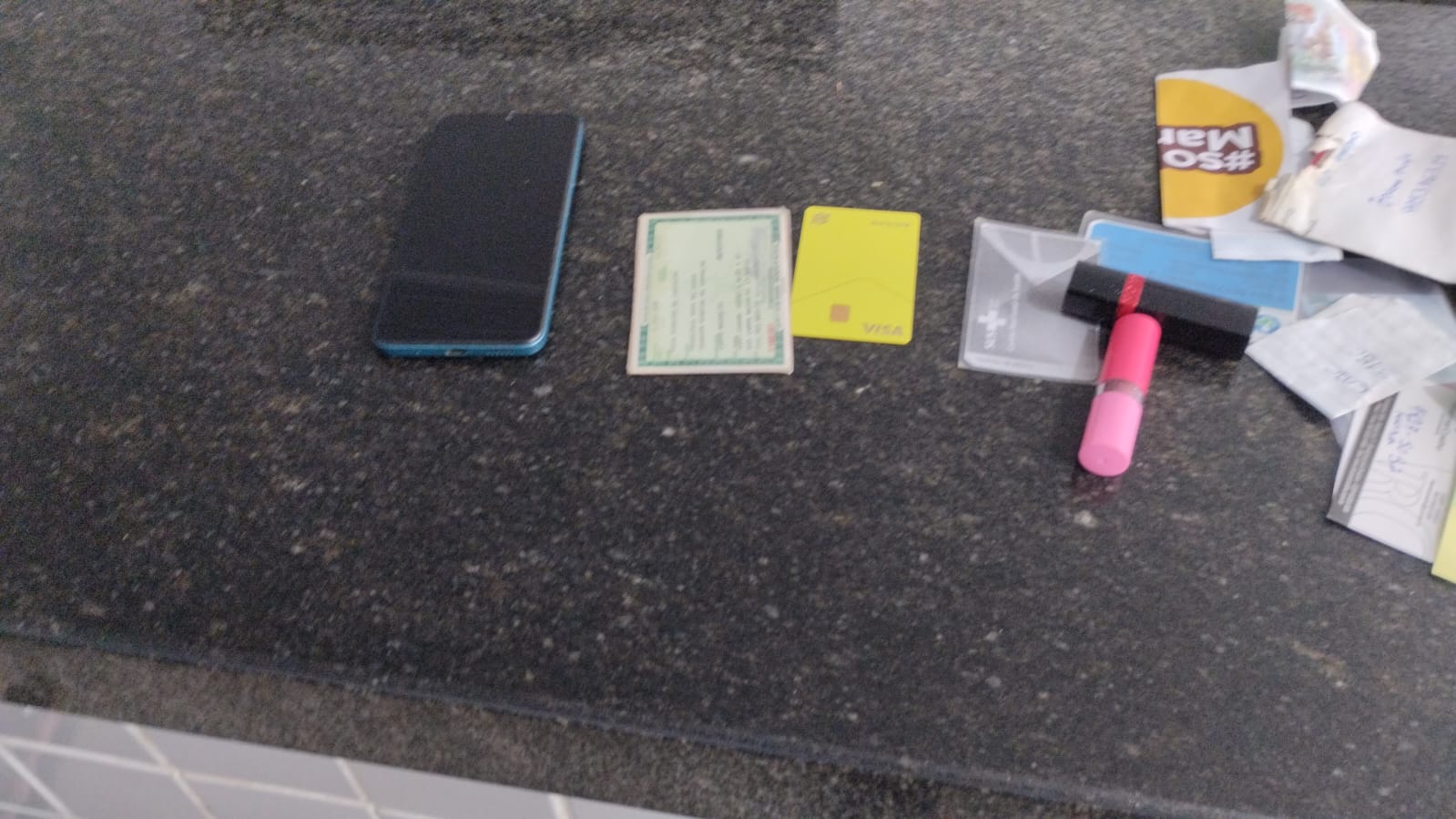 Ao chegar ao local, os policiais encontraram o suspeito, que confessou ter cometido o roubo. Ele informou que não estava mais com o celular da vítima, pois havia repassado o aparelho a um comparsa. Durante as diligências, a equipe também localizou a bolsa da vítima descartada e as roupas utilizadas pelo suspeito no momento do crime.