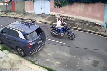 Uma câmera de segurança flagrou toda a ocorrência de tentativa de assalto a uma policial militar na zona sudeste de Teresina. A vítima saia de casa e foi abordada pelos assaltantes. Nas imagens, é pos...