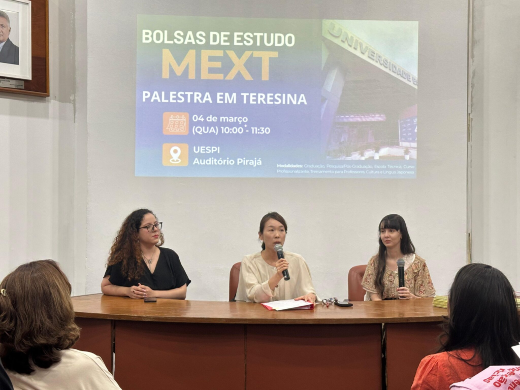 O Consulado do Japão em Belém realizou, nesta quarta-feira (4), palestra na Universidade Estadual do Piauí (Uespi) para apresentar as bolsas de estudo do Governo Japonês, ofertadas por meio do Ministério da Educação, Cultura, Esporte, Ciência e Tecnologia (MEXT). O programa é voltado a estudantes e professores interessados em realizar formação acadêmica no Japão com custeio integral.