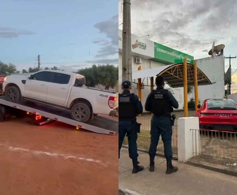 Na tarde deste domingo (26), uma picape e um carro de luxo foram recolhidos pela Polícia Militar após realizarem manobras perigosas em via pública, em São Raimundo Nonato, no Sul do Piauí.