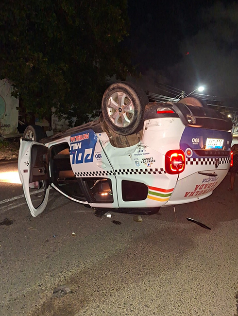De acordo com a Polícia Militar, por volta das 23h10, a viatura seguia no sentido oeste-leste pela rua Itaúna, quando foi atingida na lateral traseira direita, por um carro que vinha da rua Benedito dos Santos Lima. Segundo os policiais, o carro teria desrespeitado a sinalização de parada obrigatória da via, causando o acidente. Com o impacto da batida, a viatura capotou. O motorista do carro de passeio fugiu sem prestar apoio às vítimas.